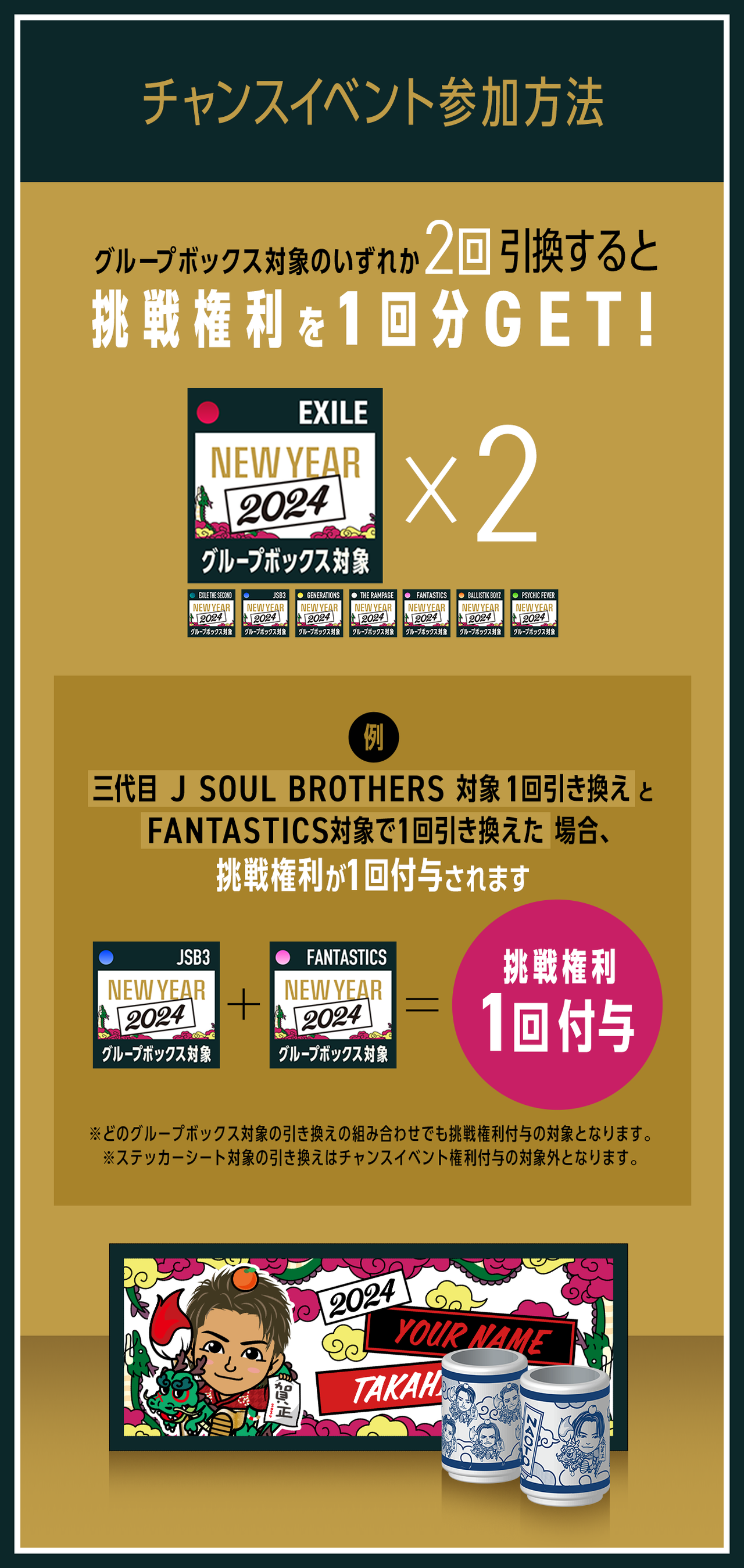 ・同じ対象アイテムを購入する毎に引き換え権利が付与されます。