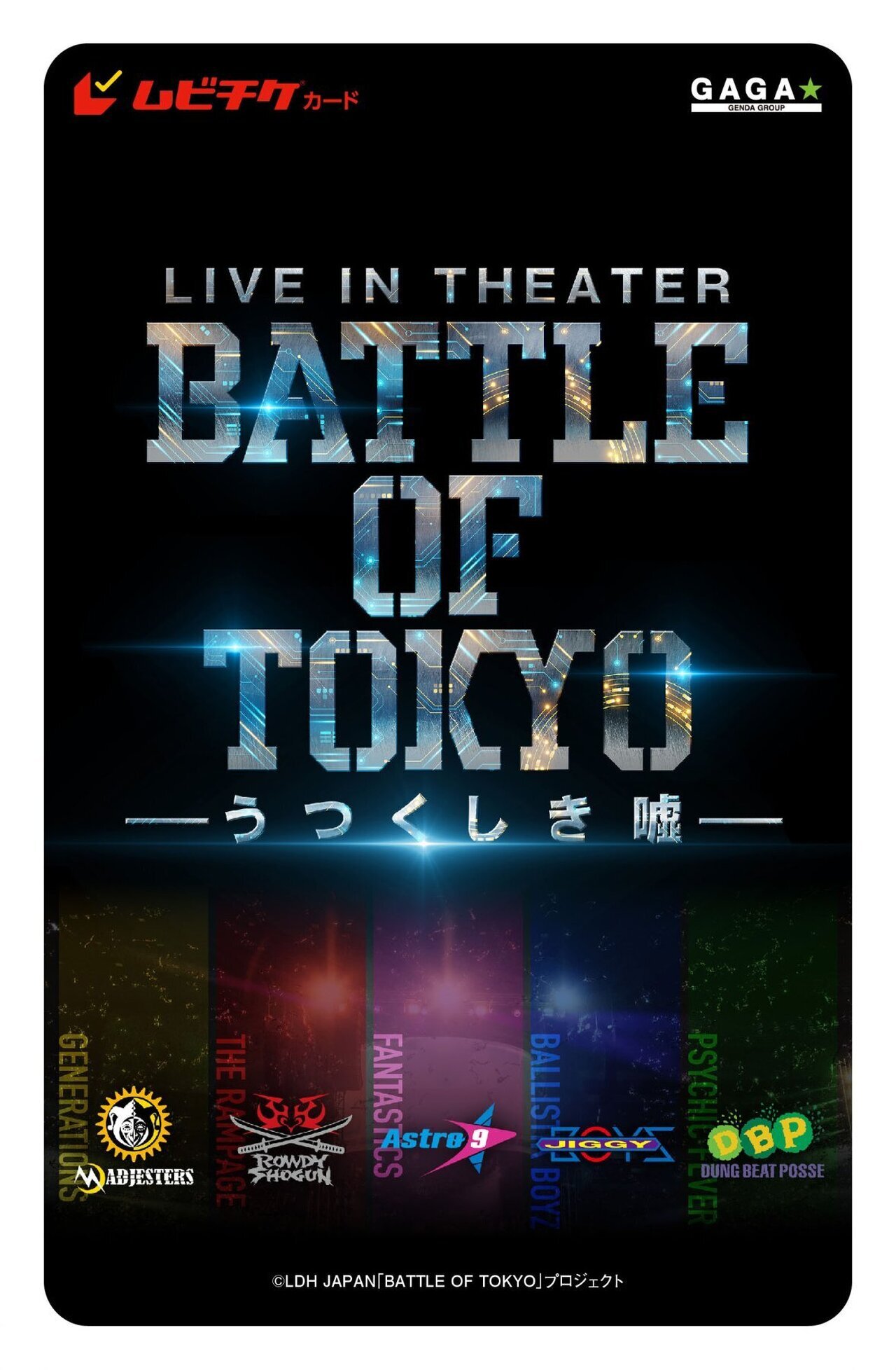 過去4回に渡り開催された音楽ライブより厳選されたライブ楽曲映像とミュージックビデオをミックス再編集し、なおかつ、原作小説「BATTLE OF TOKYO」(角川文庫)で描かれている、 ―架空未来都市・超東京を舞台に特殊スキルを持つ若者達で結成された5チームの闘いと絆の物語― の最終章となる新規エピソードを描いた最新アニメーション映像と融合させ、音響も5.1chサラウンドにリマスタリングされたLIVE IN THEATER『BATTLE OF TOKYO -うつくしき嘘-』が2026/1/23(金)よりグランドシネマサンシャイン池袋ほか全国ロードショーされます!