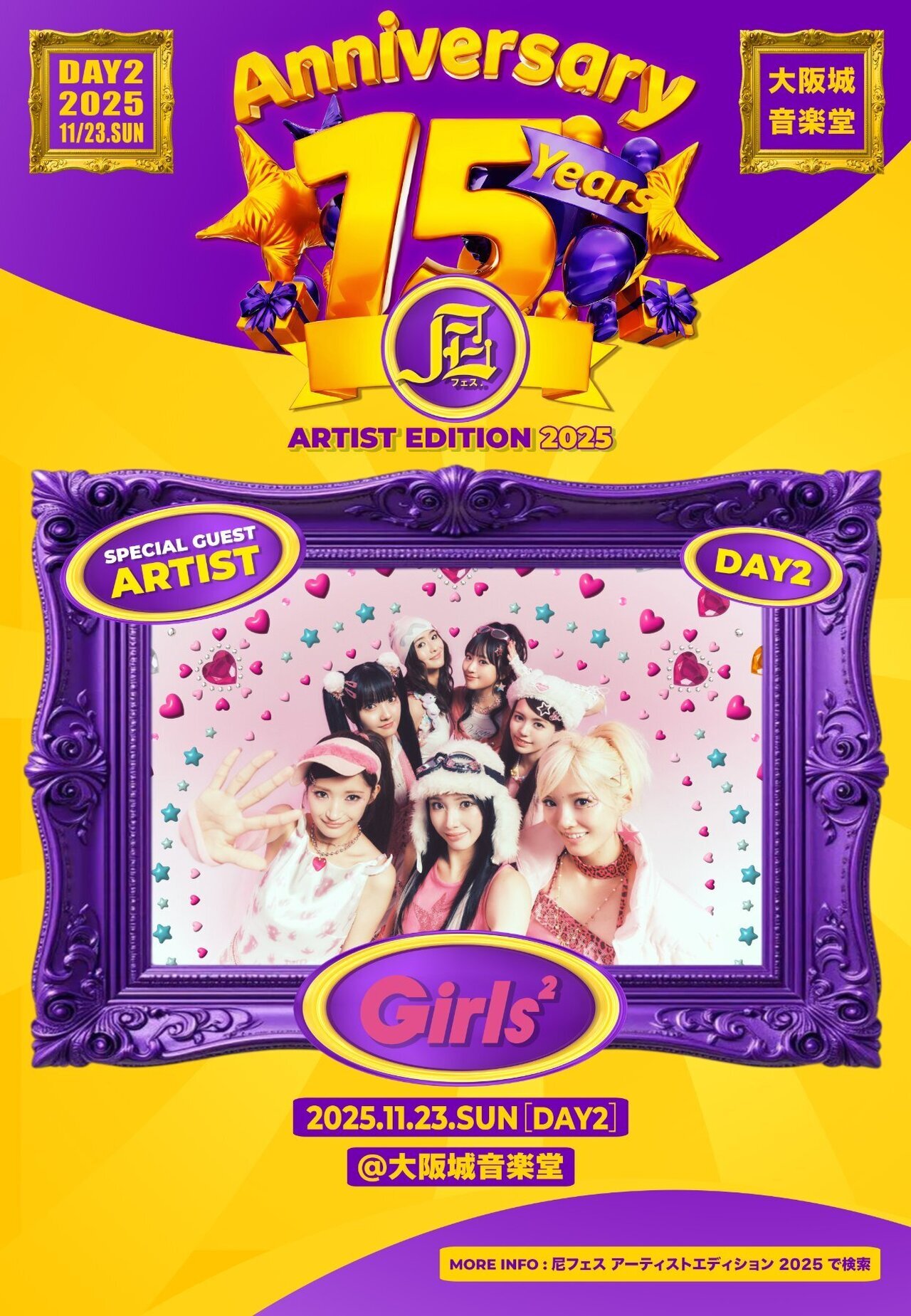 Girls2 2025.10.04 【Girls²】11/23(日・祝)開催『尼フェス "ARTIST EDITION" 2025』出演!! 11/23(日・祝)に大阪城音楽堂にて開催される『尼フェス "ARTIST EDITION" 2025』にGirls²が出演します! 是非チェックしてください!! 『尼フェス "ARTIST EDITION" 2025』 【日程】 2025/11/23(日・祝) 【会場】 大阪城音楽堂 【公式HP】 https://amafes-jack-in-the-box.com/