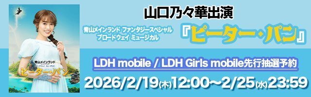 7/27(月)より上演される、青山メインランドファンタジースペシャル ブロードウェイミュージカル『ピーター・パン』に山口乃々華が出演します!