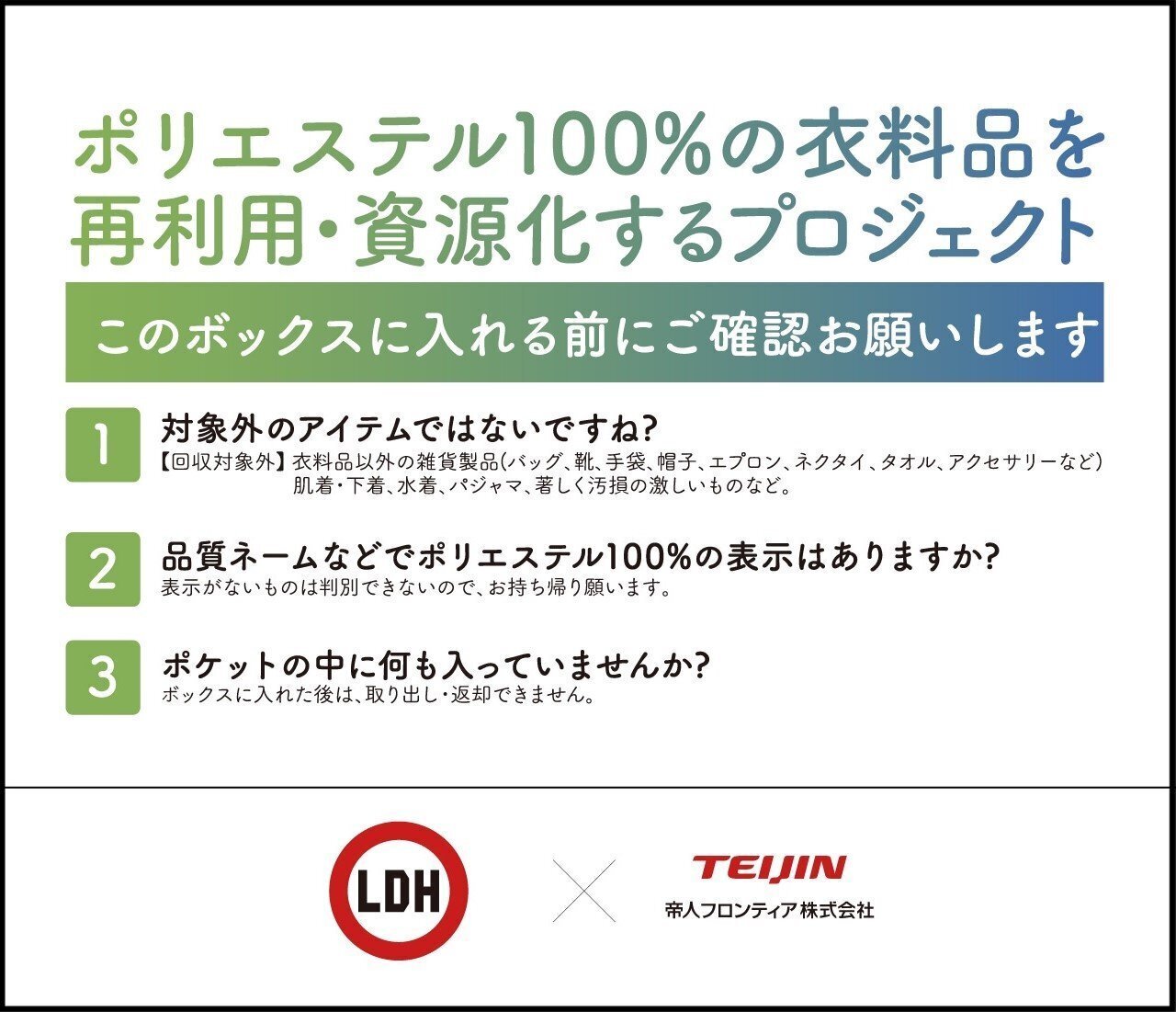 LDH JAPAN×帝人フロンティア「繊維to繊維」サステナブルな社会の実現に向けたプロジェクトとして、